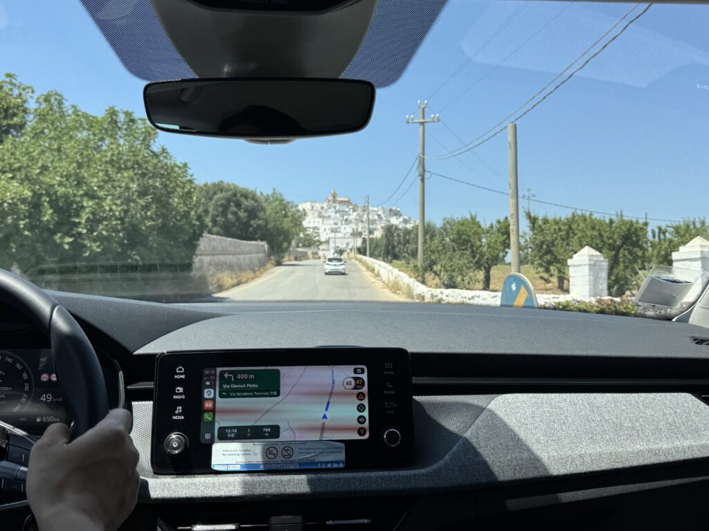 正面に見えている真っ白の村ですが、そこはアドリア海沿いの丘の上に建つ白い町「Ostuni(オスティーニ)」という村です。