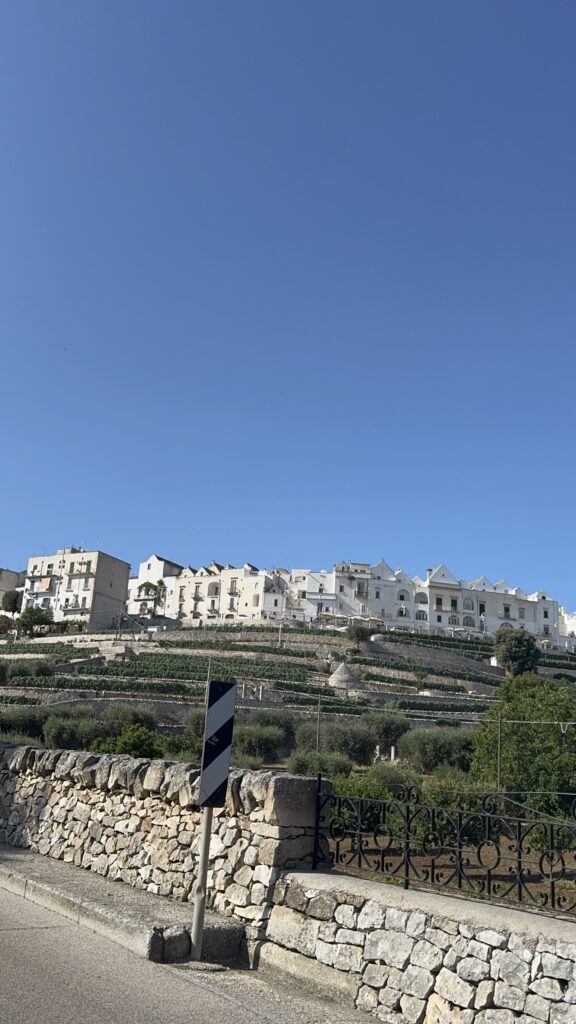 遠くから見える「Locorotondo(ロコロトンド)」は、まさに美しい村そのもので、小高い丘の上に佇む白い建物群は圧巻でしたよ!思わず「わぁ〜!すごい!」と口に出るほどでした!