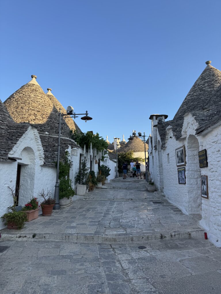 早速「Rione Monti(リオーネ・モンティ地区)」という、約1000軒のトゥルッリが並ぶ観光の中心地へやってきました。時刻はすでに19時前だったので観光客がほとんどいません。おかげで静かな「Rione Monti(リオーネ・モンティ地区)」をゆっくり観光できましたよ。