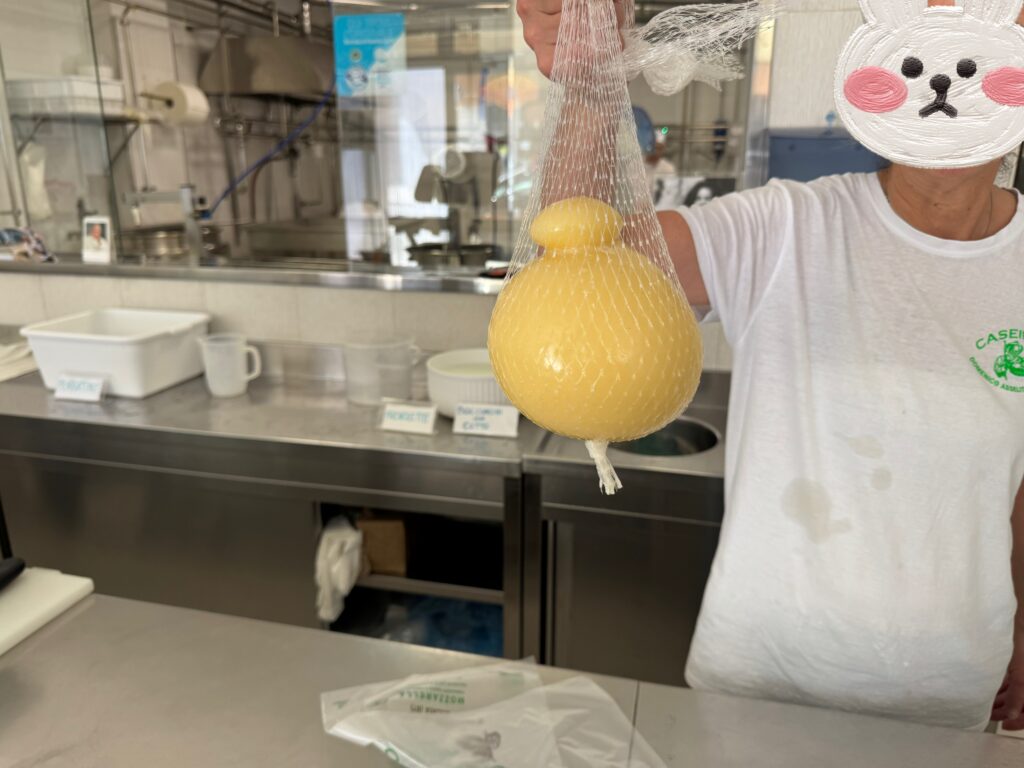 マダムの顔くらいある超大きなカチョカバロを出してきて、「この大きさからになるよ。1キロだね」と言われました。
