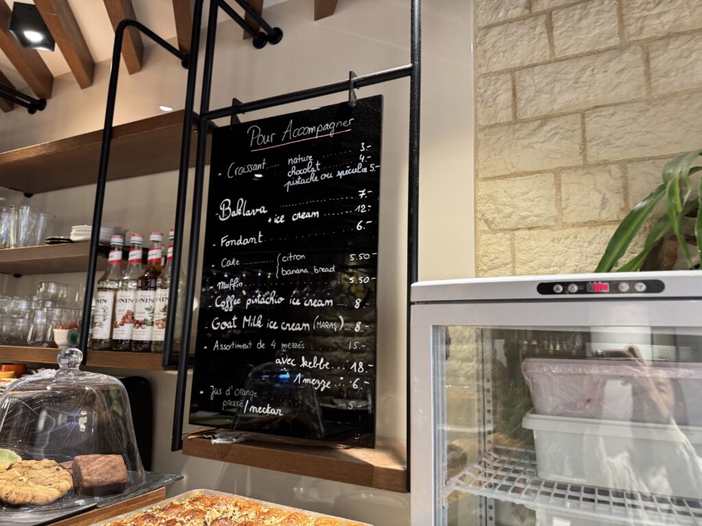 カフェメニューは、クロワッサンは3フラン、パンオショコラは4フランなどと黒板に書いてありました。