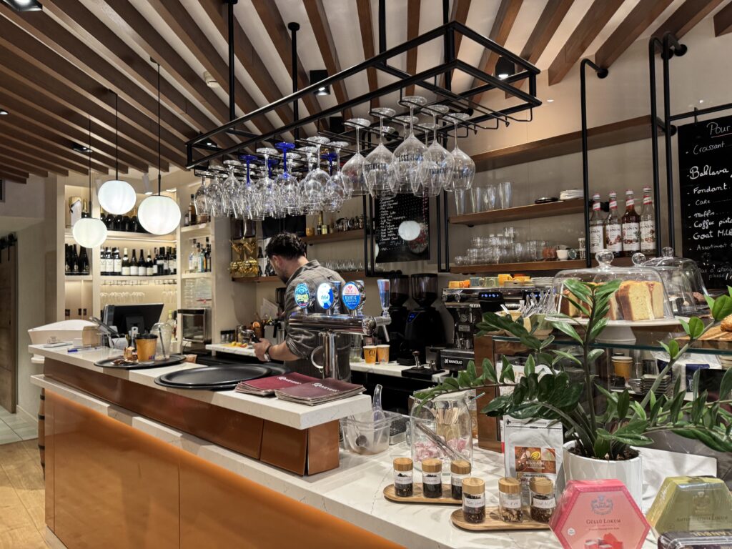 店内に入るとカウンターには美味しそうなパンやケーキが並び、夜はお酒も提供しているのかビールサーバーやワイングラスも置いてありました。