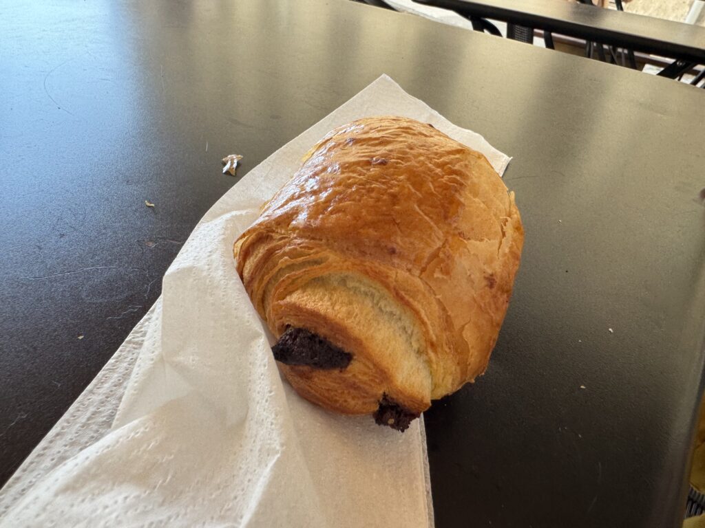 ちなみに、パンオショコラもオーダーしました。お皿なしで紙の上ですみませんですが、パンオショコラもとっても美味しかったです。
