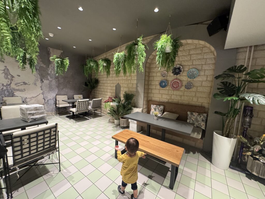 奥に行くと、広い席もありました。息子も探検しがいがあったようです(笑)