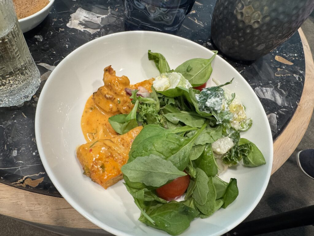 お腹が空いていた私は、あれこれオーダーしたにも関わらず料理が来るのを待てなくてビュッフェコーナーでチキンとサラダをとってきてしまいました。