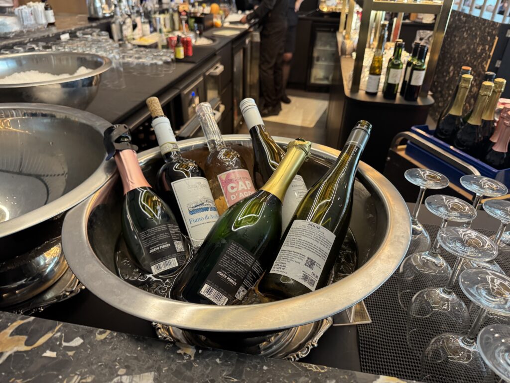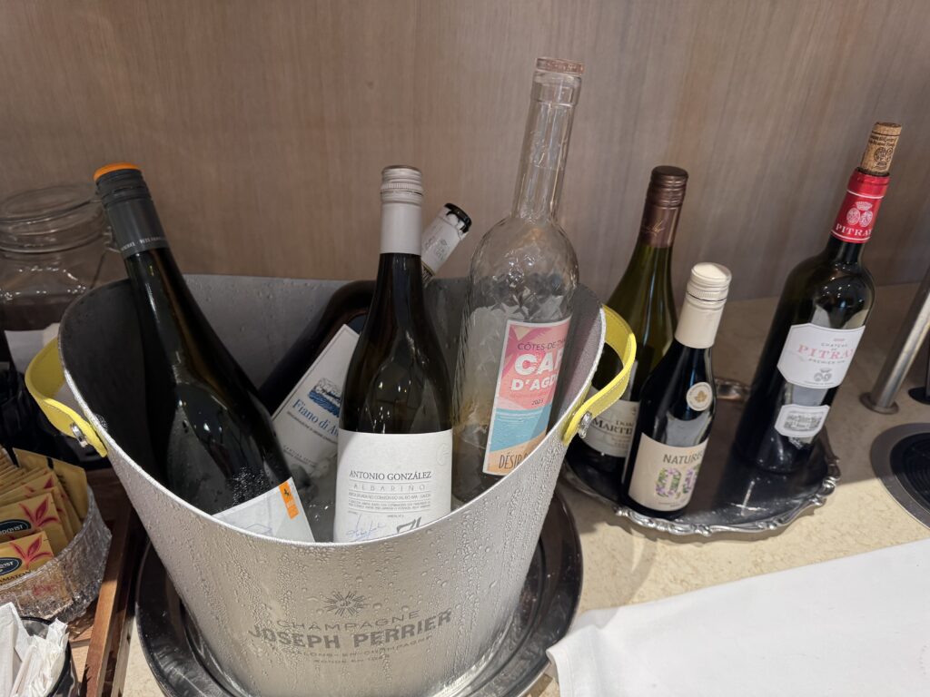ここでは、ドリンクは何でもオーダーできますし。シャンパンやワインも冷やされていました。(全部ラベルがひっくり返っていますね・・・笑)