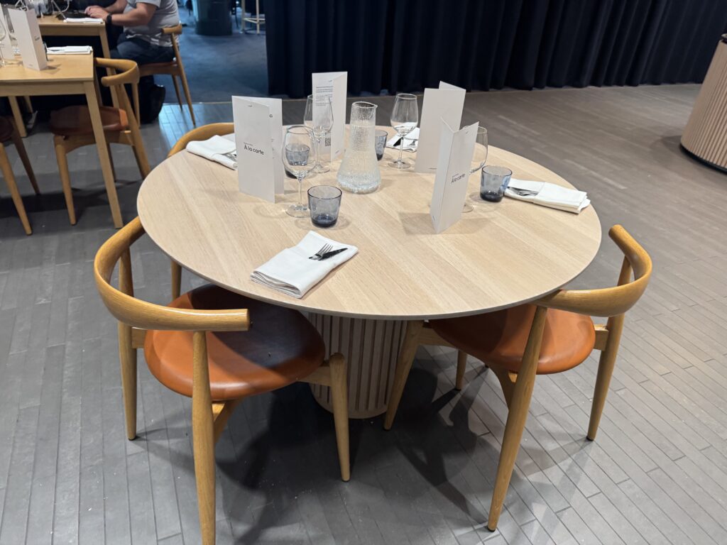 北欧らしいおしゃれなテーブルセットで美味しい食事をとることができます。食事は、ビュッフェの他にオーダーメニューが用意されていました。