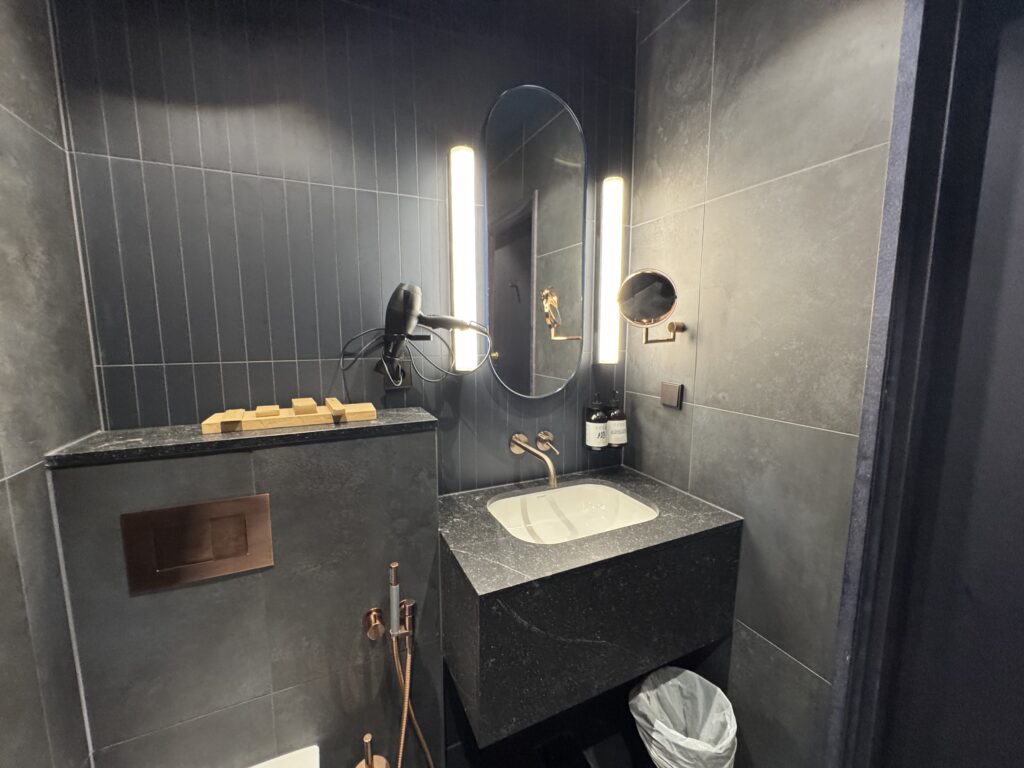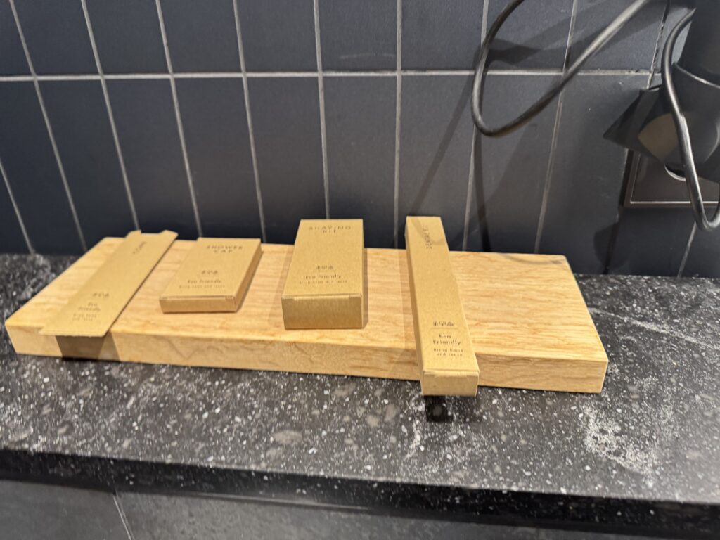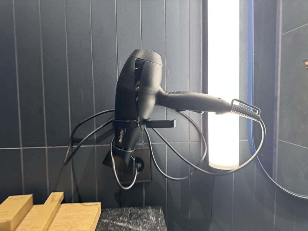 ドライヤー完備です。ドライヤーがあるのは非常に重要で、あると思って先に髪を洗ったらドライヤーがなくてびしょびしょのまま飛行機に乗る羽目に・・・なんてことがあるのでシャワーを浴びる前のドライヤーチェックは必須なのです。