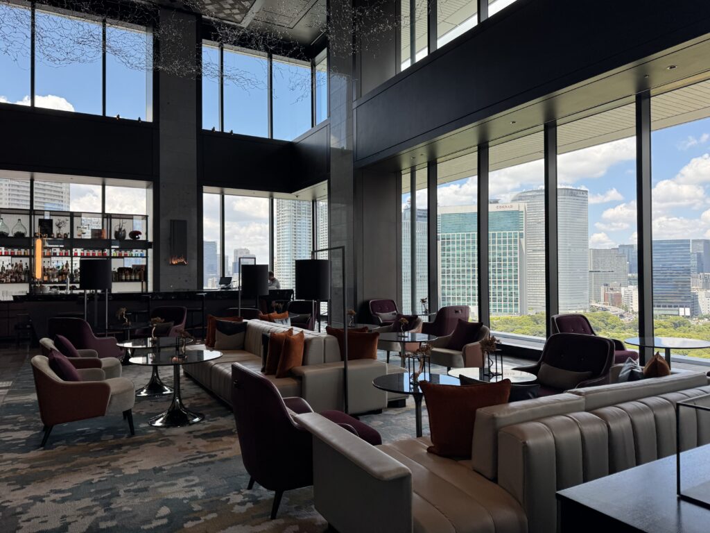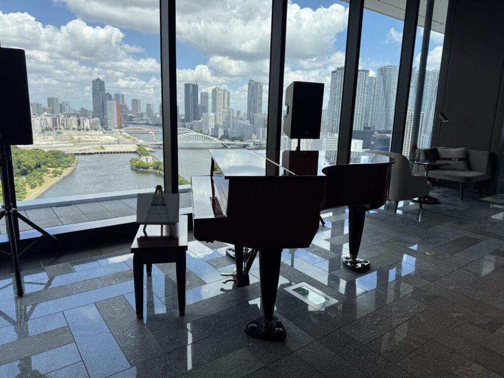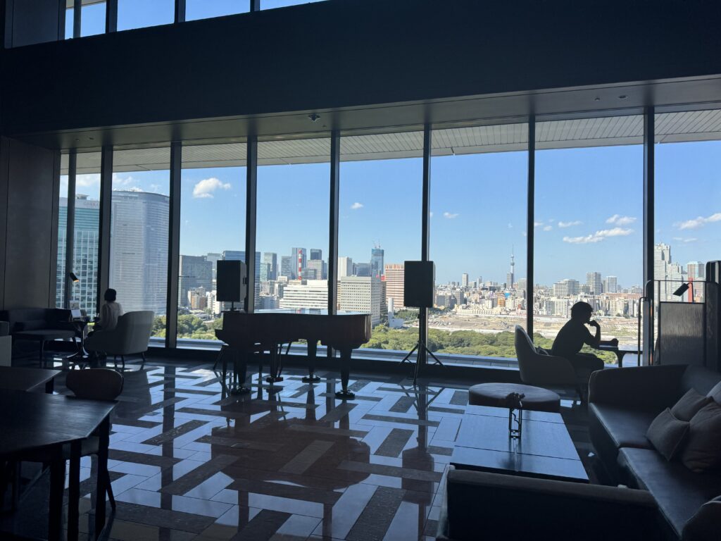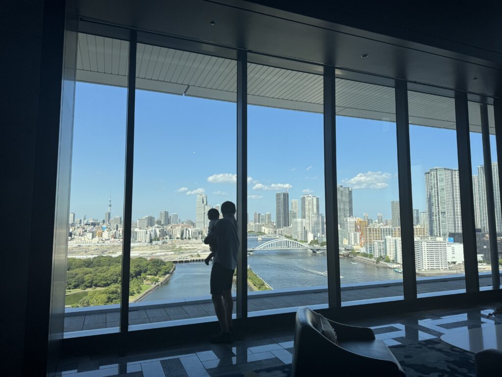 東京湾、隅田川、浜離宮恩賜庭園を一望できるガラス張りのフロアとなっていました!なんて素敵なフロントなのでしょう!