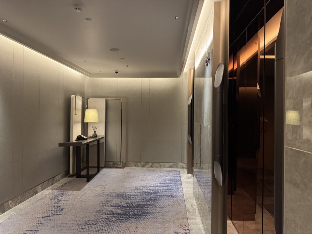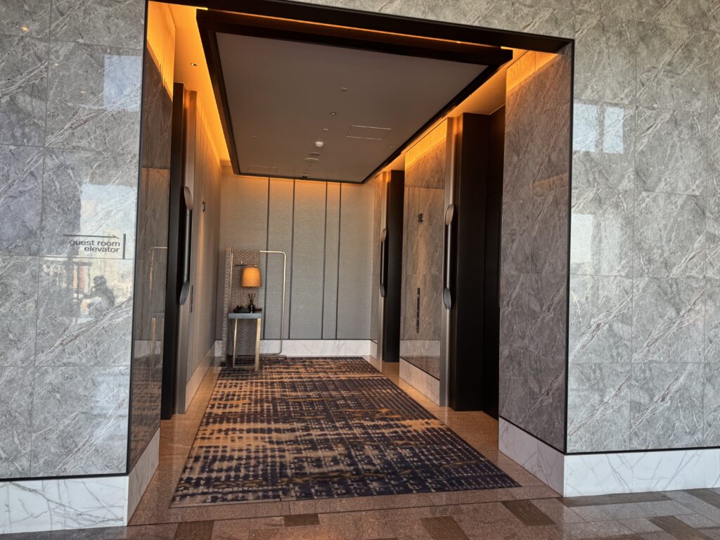 ピカピカのエレベーターを降りると、これまたおしゃれなエレベーターホールに出て、