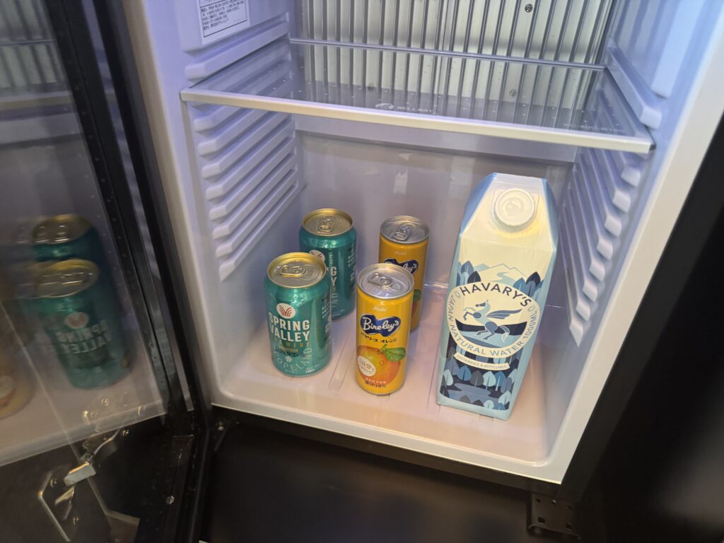 更に、冷蔵庫の中のドリンクはフリーで自由に飲んでOKでした。ホテルのミニバーが無料ってあんまり聞かないので嬉しかったです。