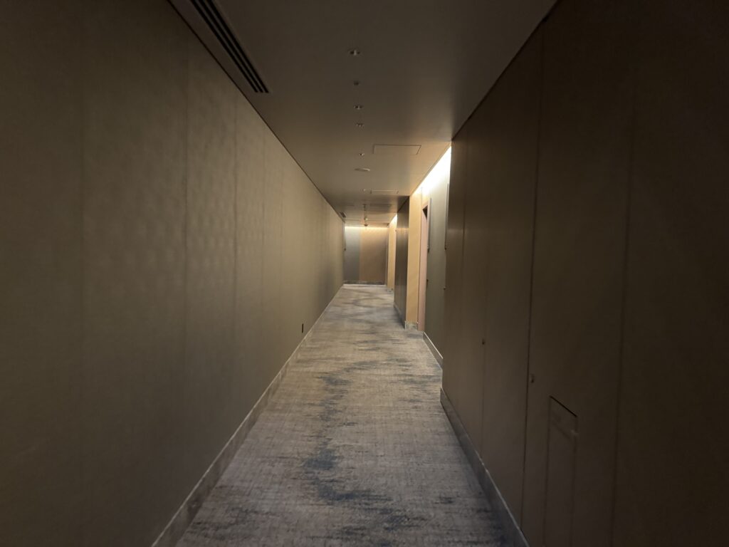 1階にはフロントはなく、一番奥にあるエレベーターでまずはフロントまで向かいます。途中の通路もどこか幻想的でおしゃれです。