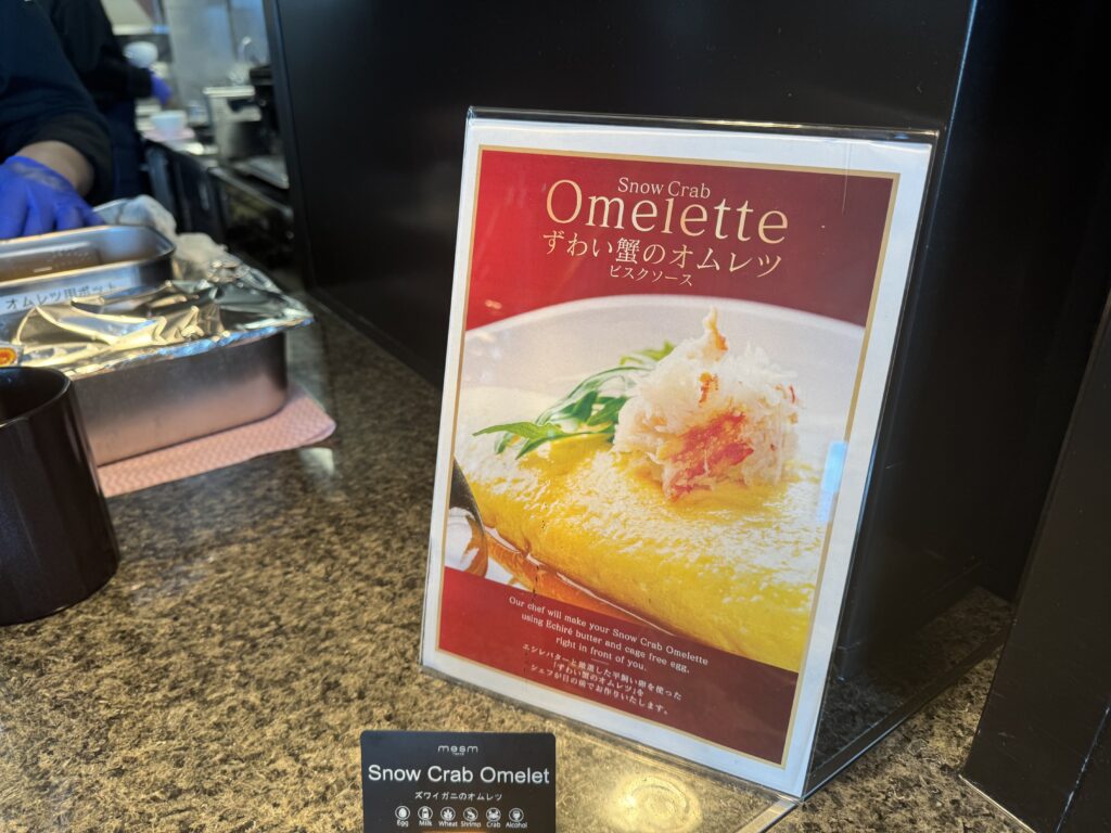 その場で作ってもらえるオムレツに(この日はズワイガニのオムレツでした)