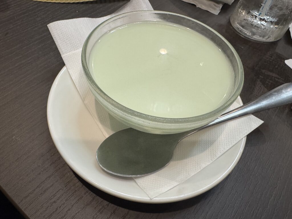 デザートのメロン杏仁豆腐はとても美味しかったです。辛さが続いたので、この杏仁豆腐にはだいぶ癒やされましたよ!