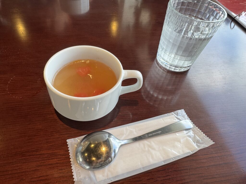 トマトや、フルーツのエキスが入ったコンソメスープで優しいお味でした。