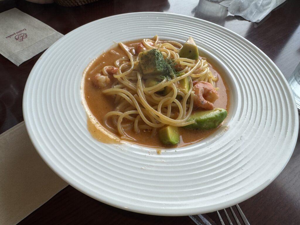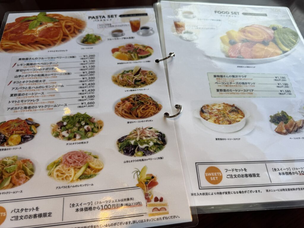 フルーツスープ、フルーツサラダ、パスタ、食後のコーヒーがついて1260円〜1660円(パスタの種類による)で食べれるので、ランチには大満足となりました。