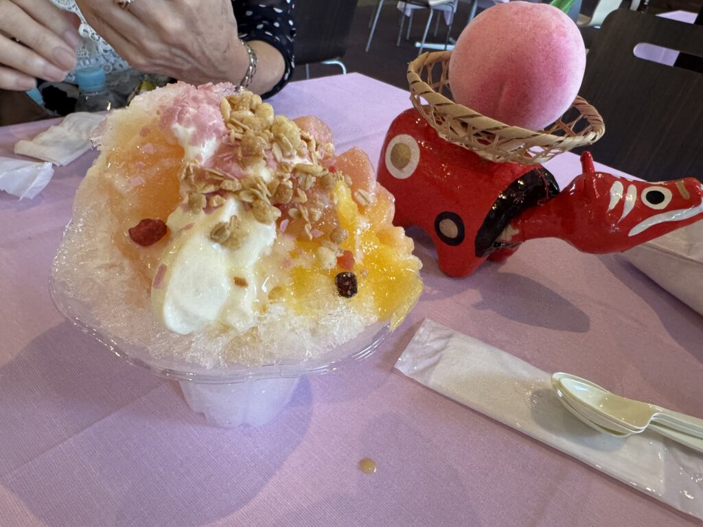 ここでは3種類の桃のソースを自分好みでかけて食べられるかき氷が食べれたので食べてみることに!