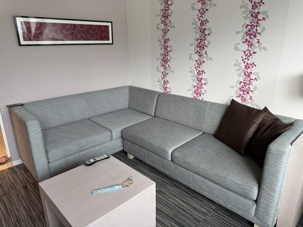 外の光が入る明るいお部屋でした!ソファも大きめで開放感があります。