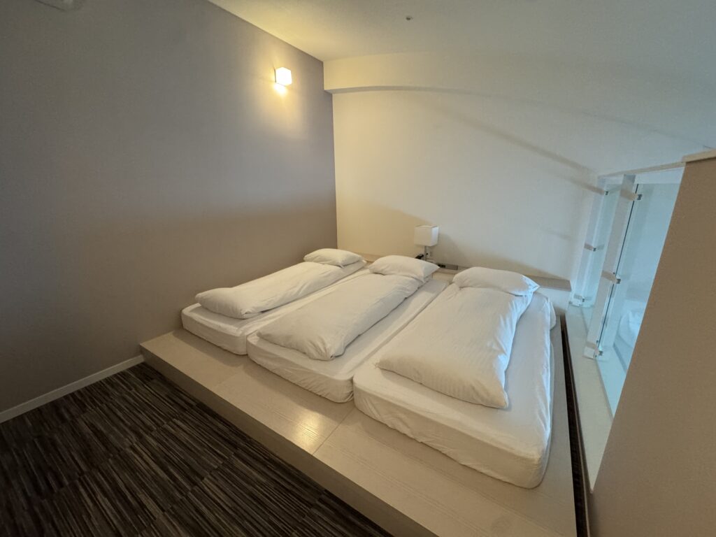 お布団が敷いてありました。屋根裏みたいでわくわくする造りですよね!