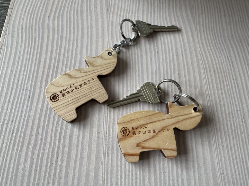 最後にお部屋の鍵ですが、赤ベコの形のキーホルダーでした。