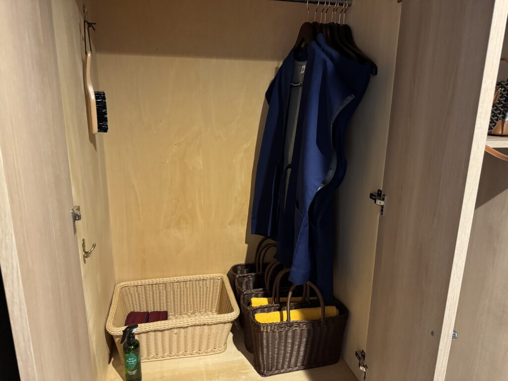 クローゼットにはお風呂セットと浴衣の上に羽織るものがかけられていました。