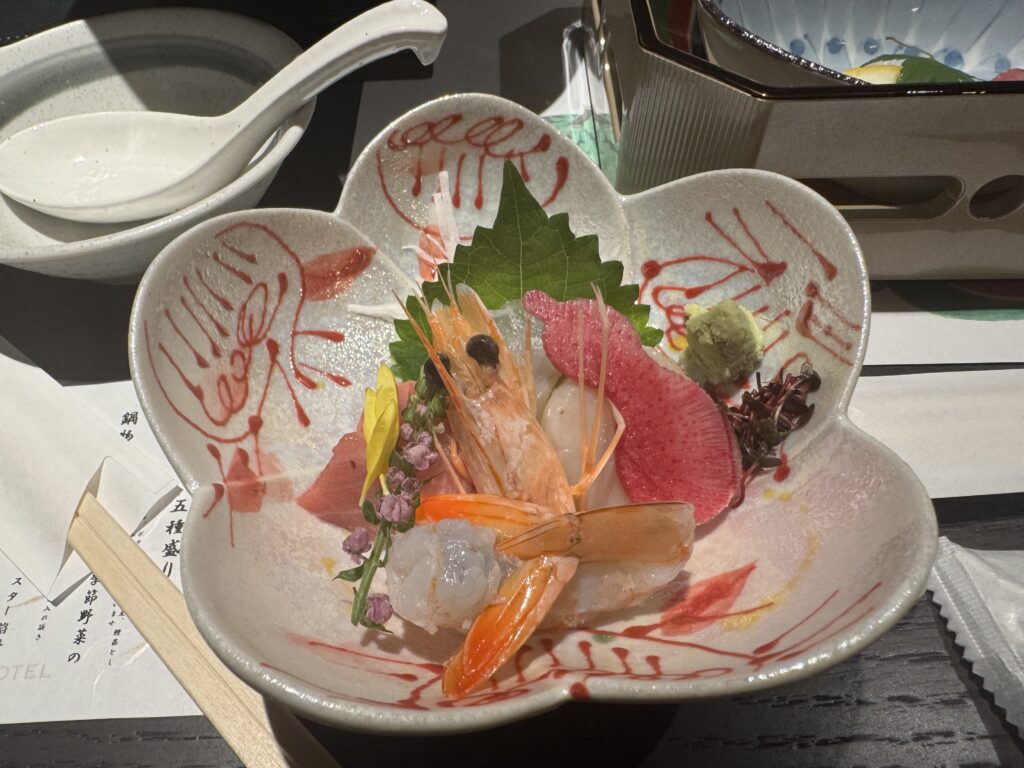 お造りは5種盛りで、どれも新鮮で美味しくてびっくりしました。見た目も美しいですよね。