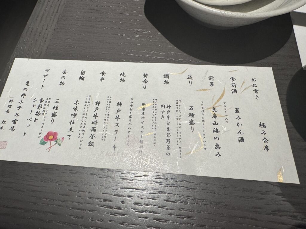 さて、本日のメニューですが、神戸牛ステーキや時雨釜飯、神戸牛すき焼きと神戸牛尽くしです!これは楽しみ・・・!