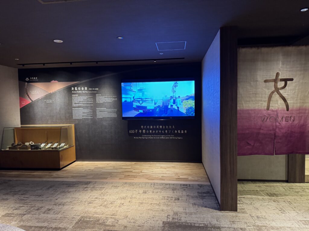 温泉横には、有馬温泉の湯質や歴史を学べるコーナーもありました。