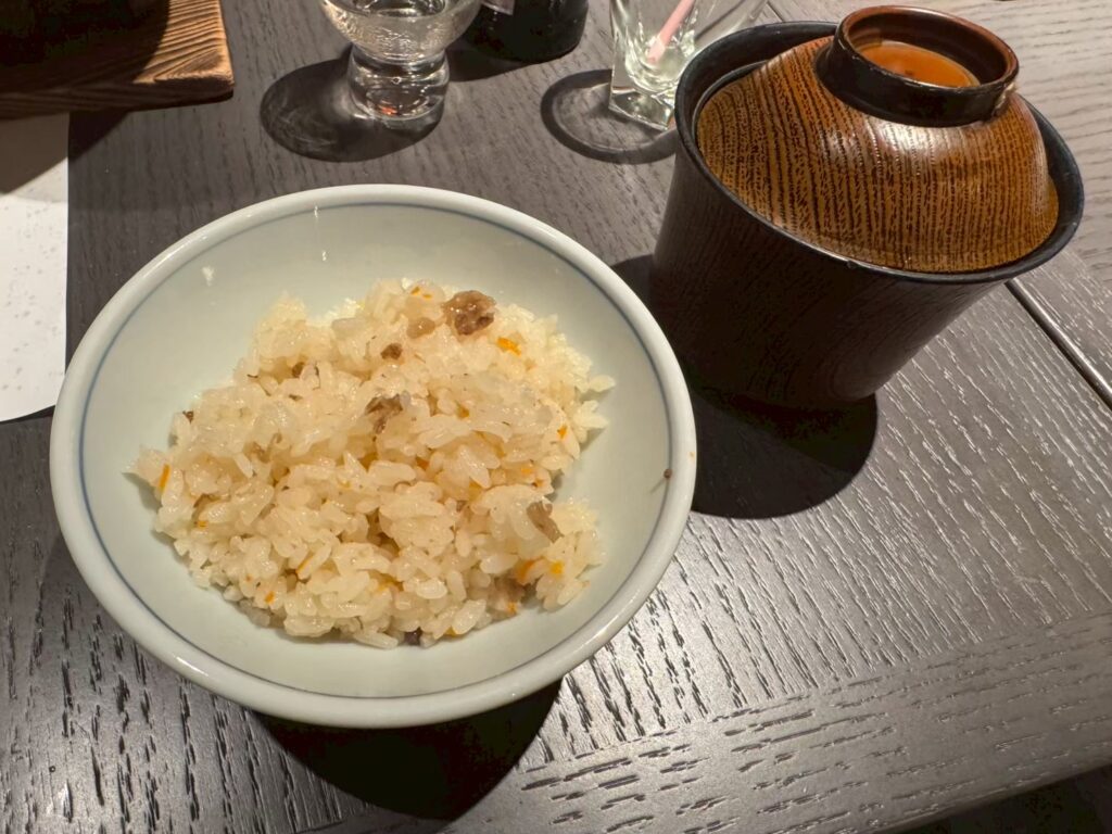 お肉の旨味がご飯に染みていて、最後まで神戸牛を堪能することができました。椀物は赤味噌のお味噌汁でした。