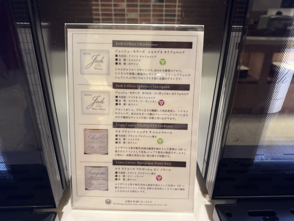 ワインの銘柄はカルフォルニアとブルゴーニュがメインでした。
