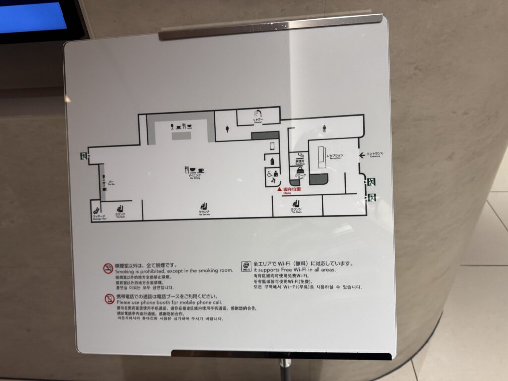 ラウンジ内のマップはこんな感じです。広さは800平米で143席あります。