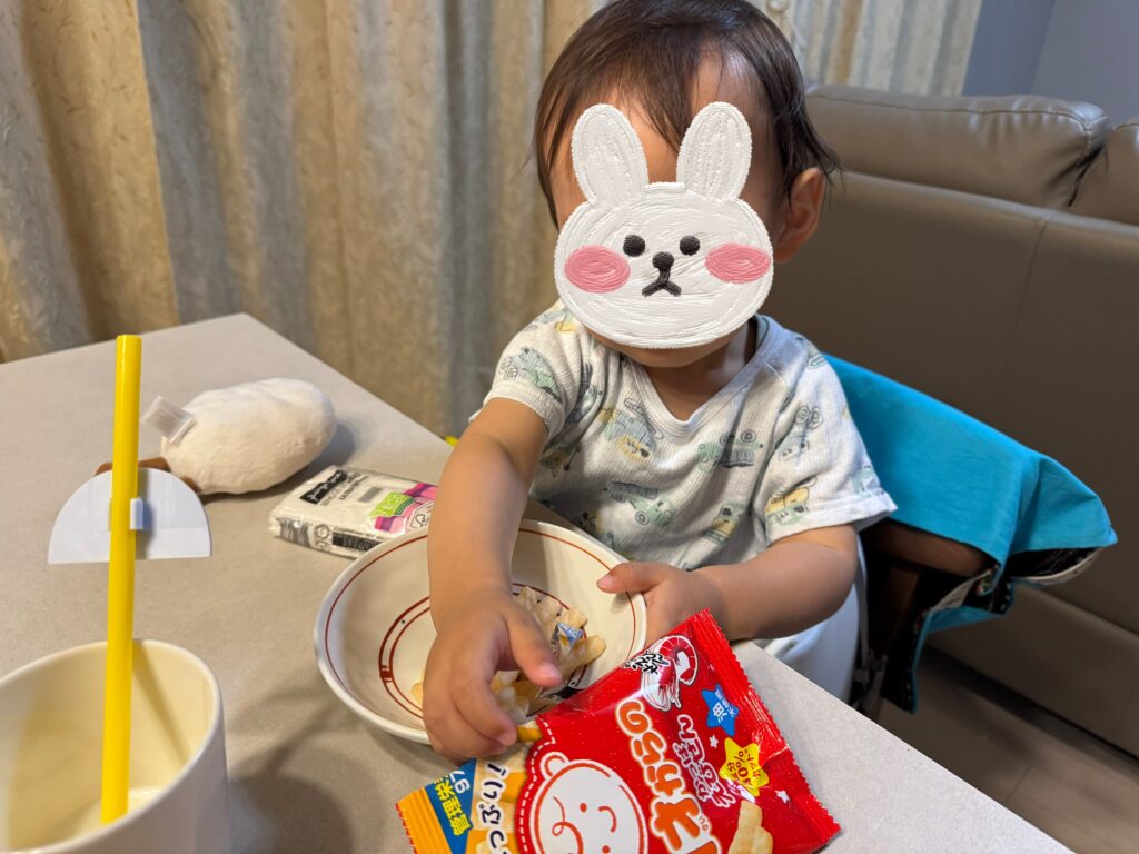 ご飯も食べたのに、日本で知ってしまったかっぱえびせんをどうしても食べたくなってしまったらしく、起きちゃったそうです。