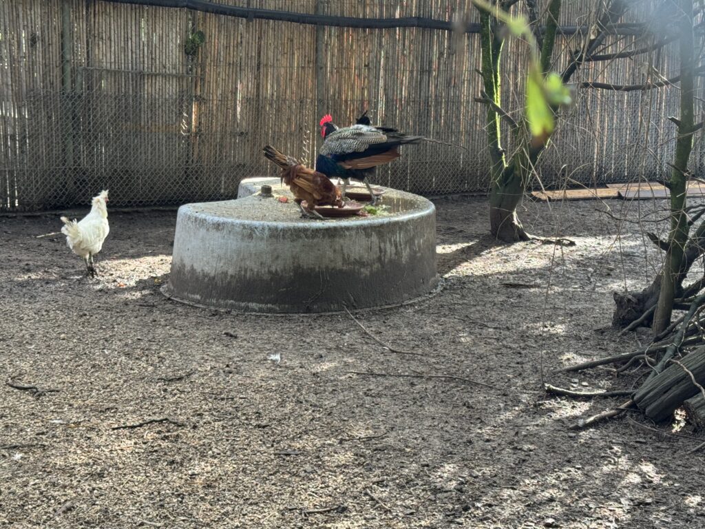 孔雀など様々な鳥が同じ檻に入っていました。