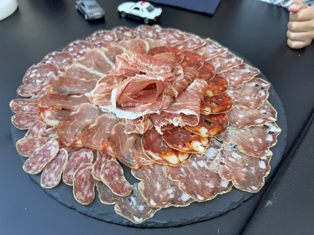 さて、まずは子供達も大好き!な「Assortiment de charvuterie(ハムの盛り合わせ)」です。5種類のハムが乗っていて、色々と楽しめました。お値段は24ユーロでした。