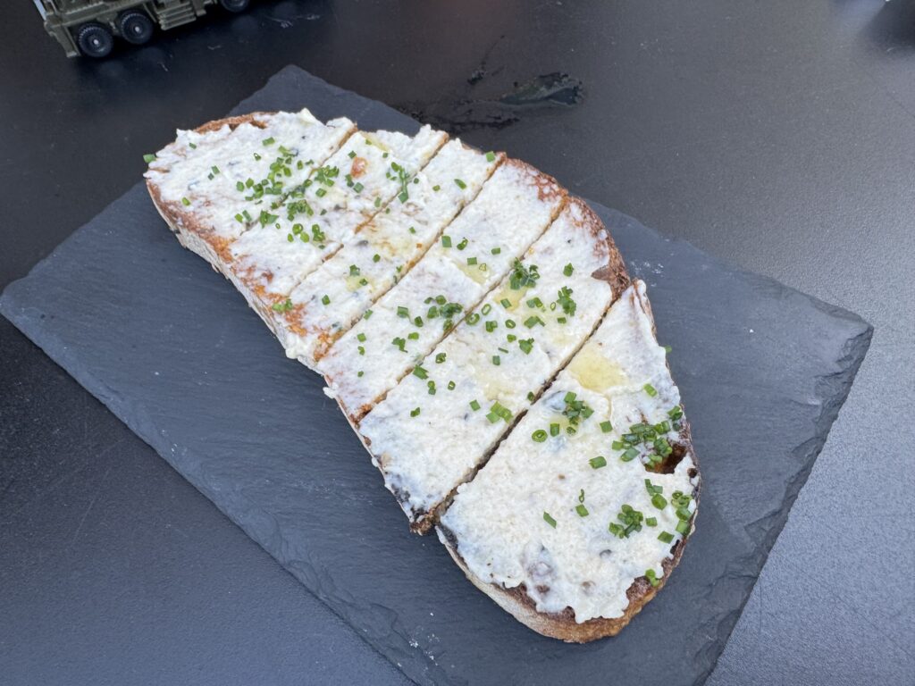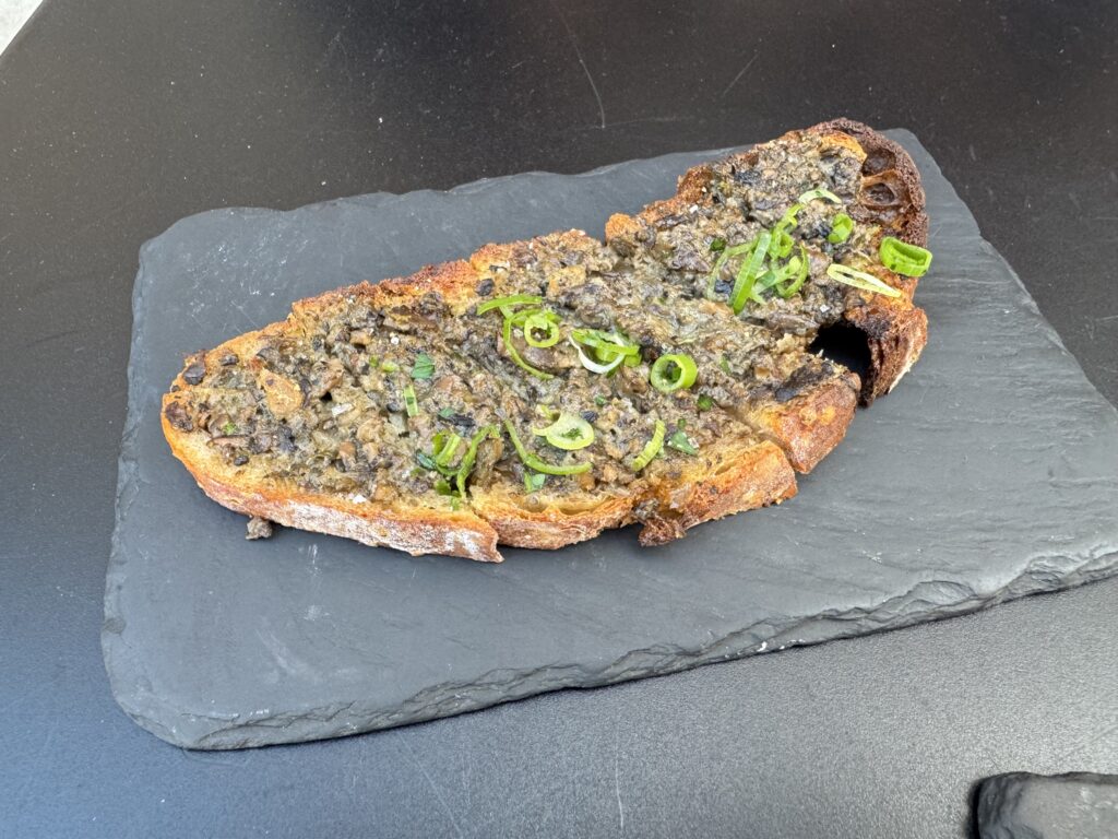 続けて「Tartine de Tarama truffe(トリュフのタルティーヌ)」12ユーロです。香りが凄くて塩気があっていい組み合わせでした。