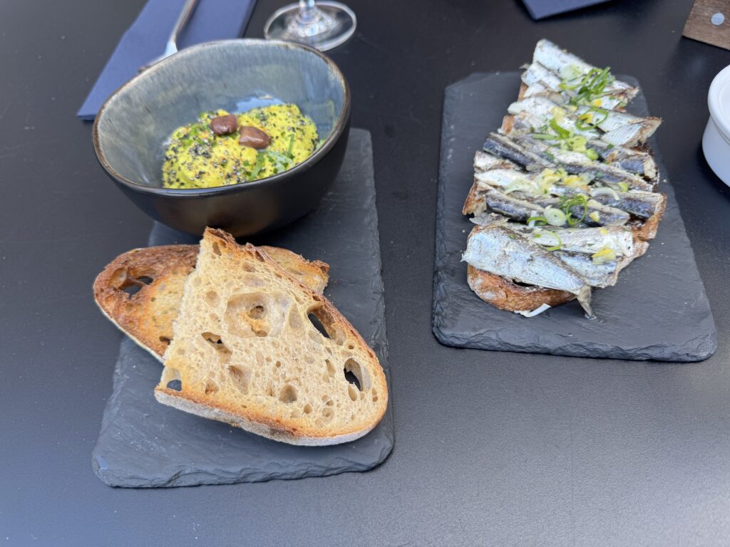 左は「Tartine de mini sardines citron(サバとレモンのタルティーヌ)」15ユーロ、左は「Houmous(フムス)」10ユーロです。