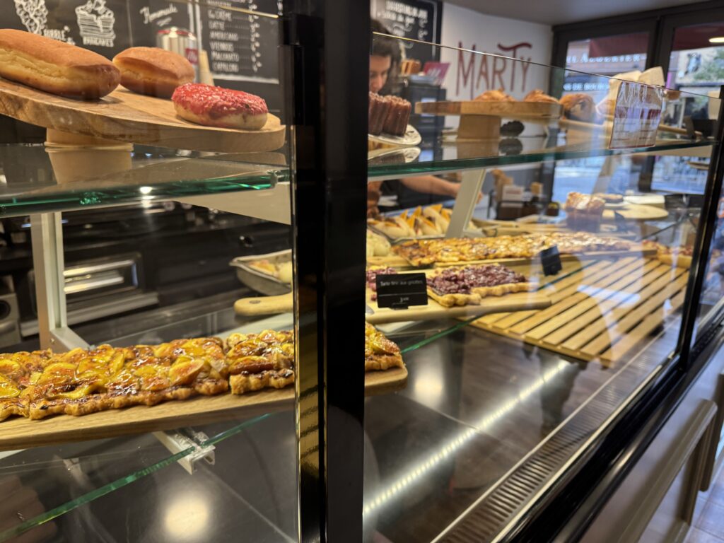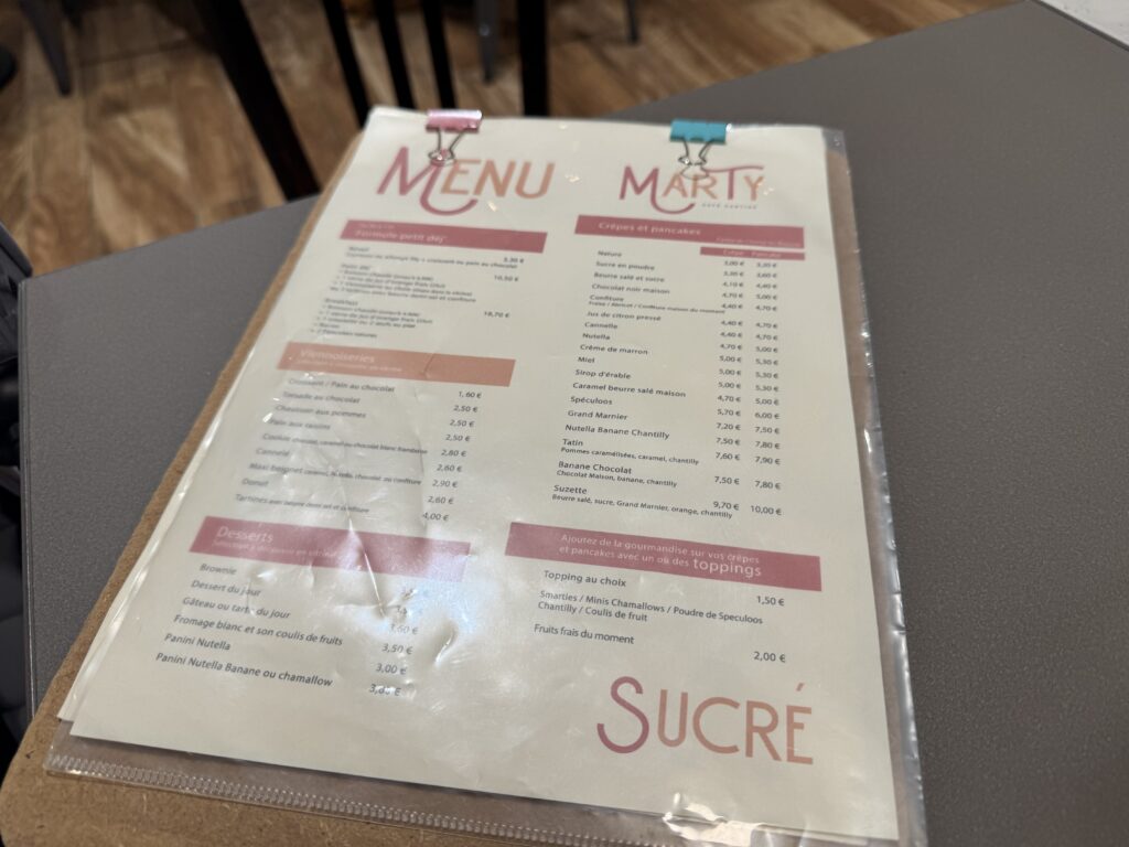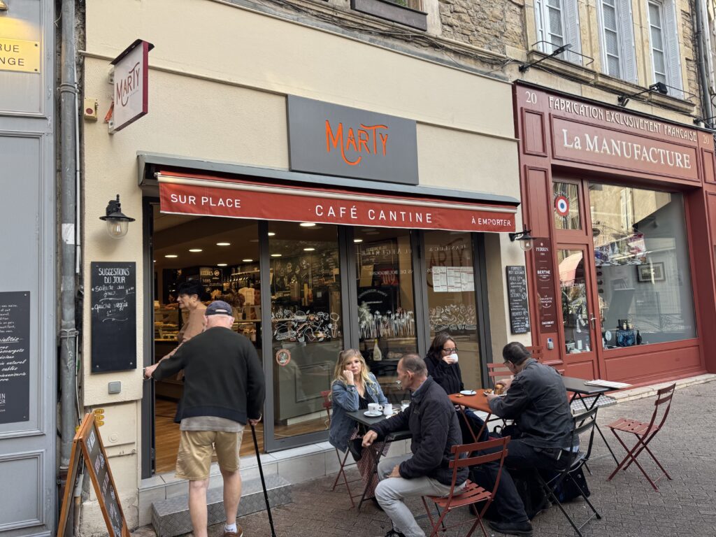 こちらが、「Marty café cantine」の外観です。小さなカフェですが、テラスでコーヒーやパンを楽しむ人で溢れていました。