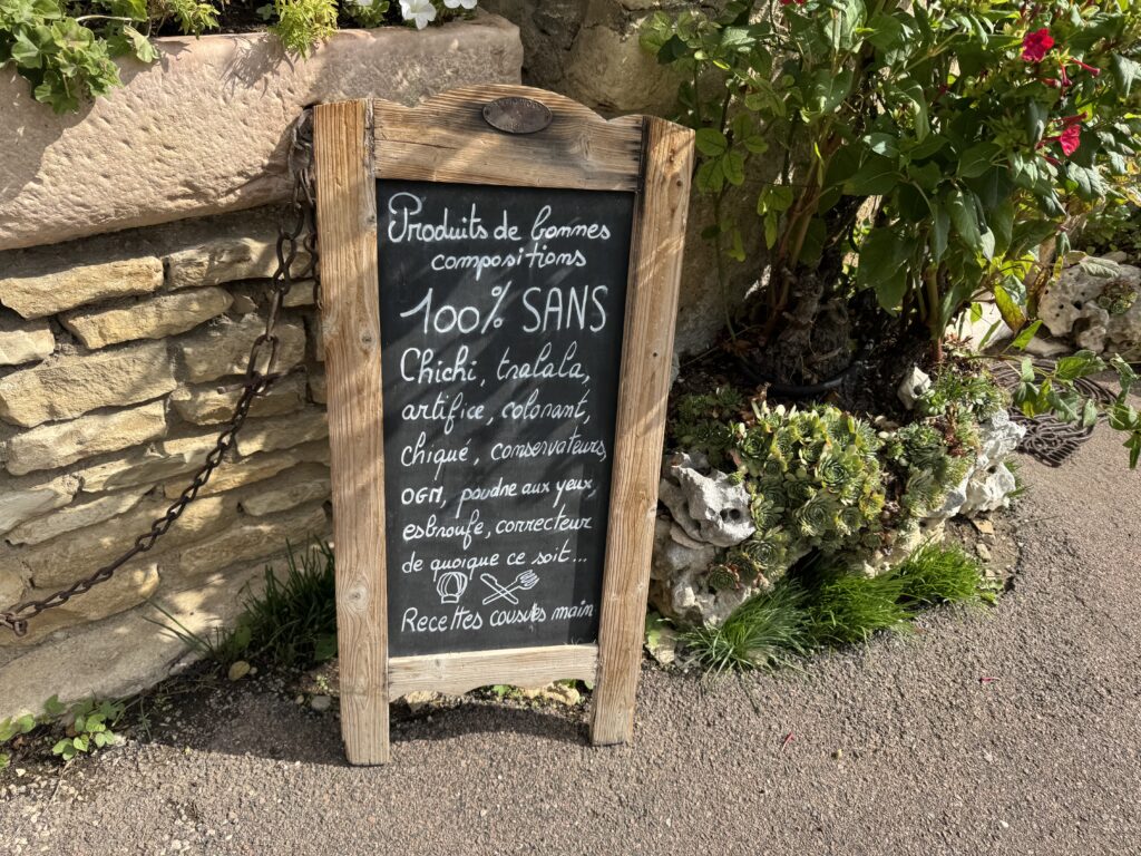 お店の前には看板が建てられており、ここには「100%無添加でごまかし、まやかし、人工的なものや、着色料、ハッタリ、保存料、遺伝子組み換え、見せかけだけの粉、はったり、よくわからない添加物は入っていません。手作りのレシピです」と書いてありました。