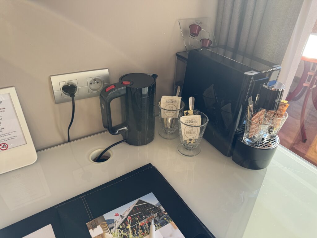 ミニデスク、コーヒーマシーンと電気ケトルが用意されていました。