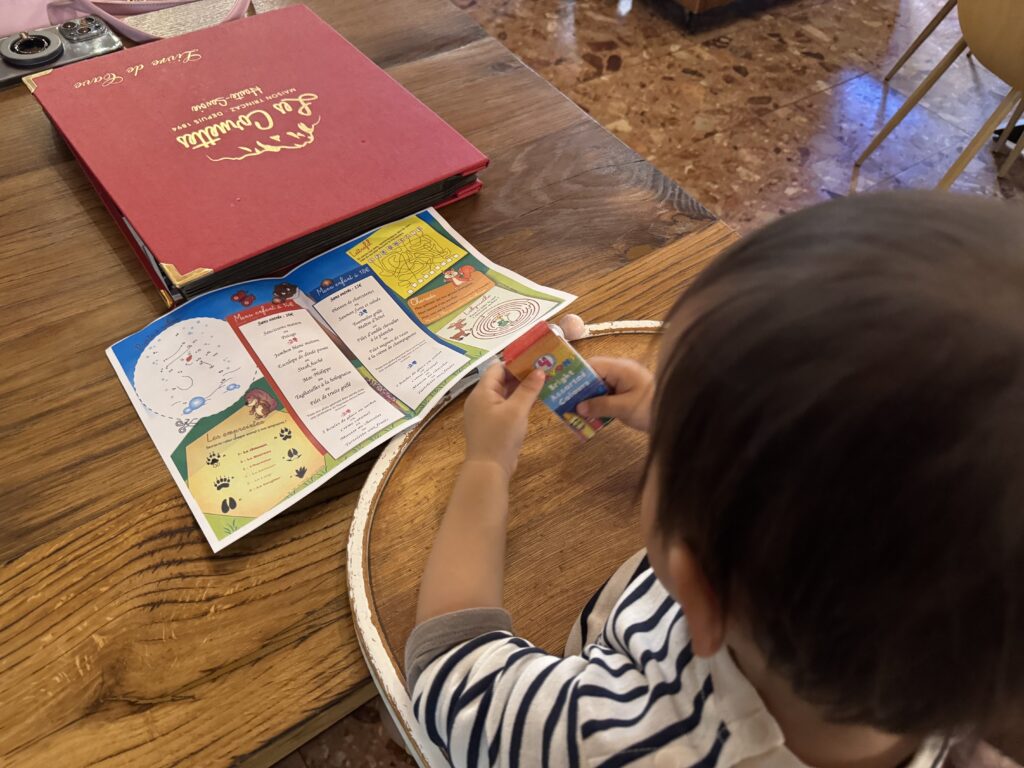 息子にはハイチェアーとキッズメニュー、クレヨンの用意がありました。フランスのこうした子供に優しいところ最高です♪