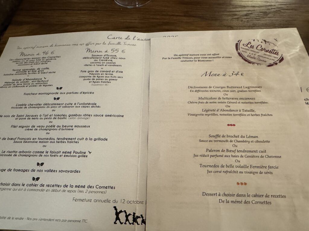 これからご紹介する「Restaurant Les Cornettes」は、5世代に渡る歴史あるレストランで、1933年からミシュラン・ガイドに掲載されており、近年ではミシュランプレートを獲得している実力派です。