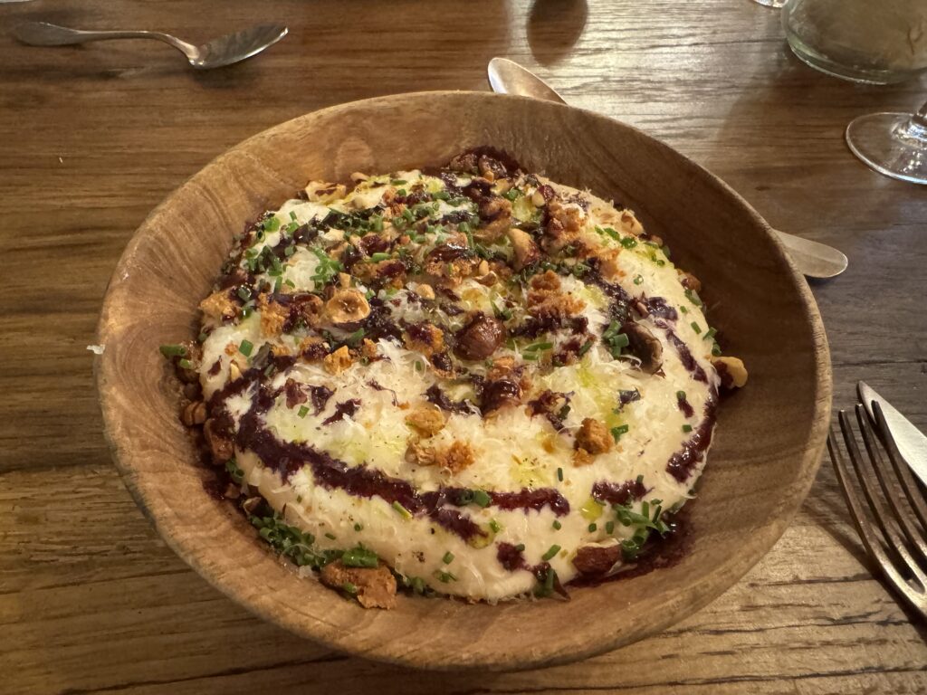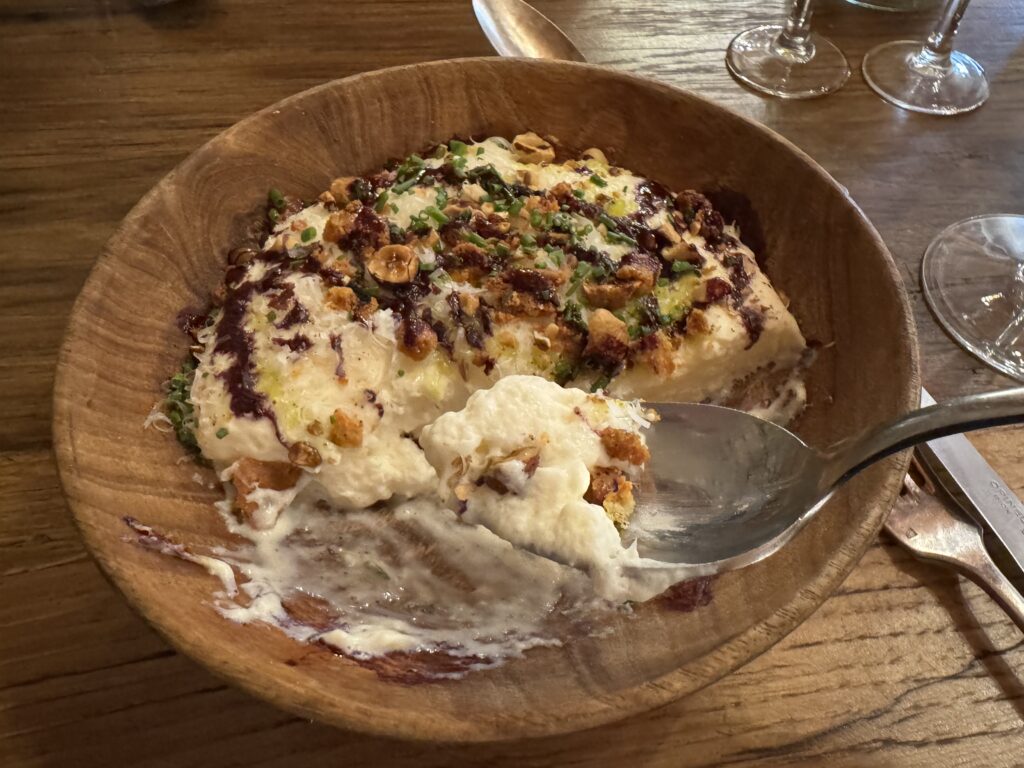 こちらはなんとチーズなのです!アボンダンスチーズと白ワインを使った特製料理「ベルトゥー」という料理なんですが、大きな木のボウルにたっぷりとチーズが入っていて驚きました。