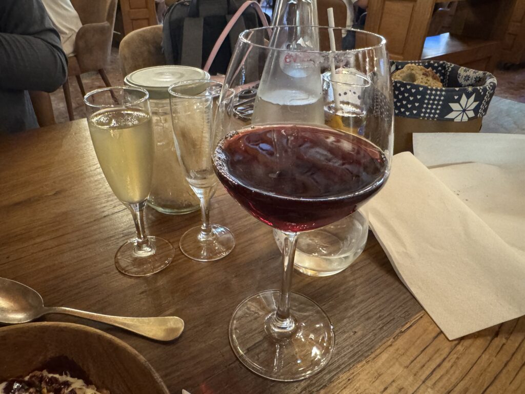 ここからは大人のメニューです。せっかくなのでお昼から赤ワインをグラスで頂きました。
