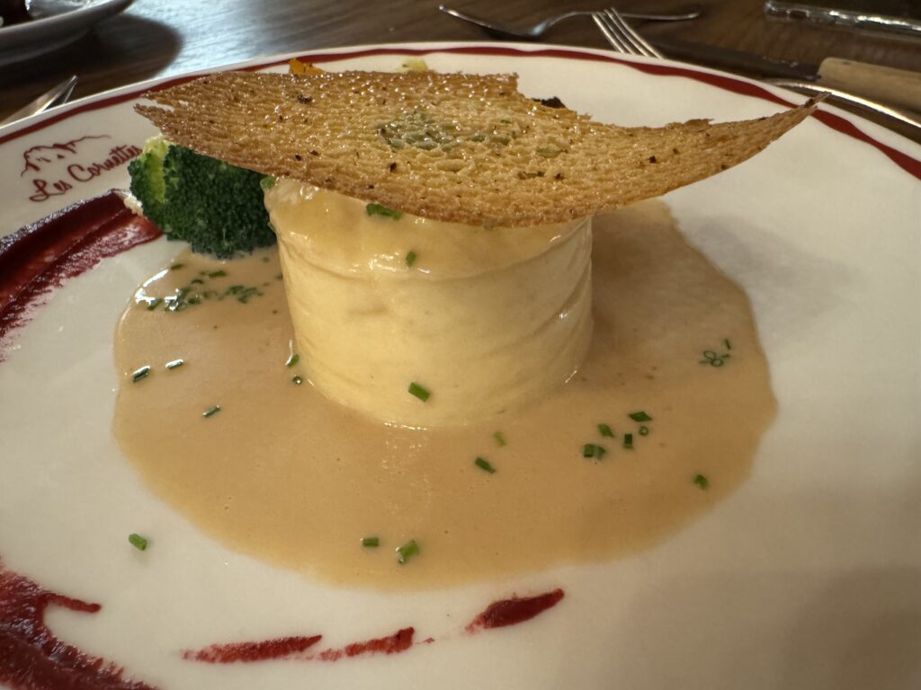 主人のメインには、「レマン湖産カワカマスのスフレ」を選びました。これは、想像していたものと違ったのでちょっとびっくりしましたよ!