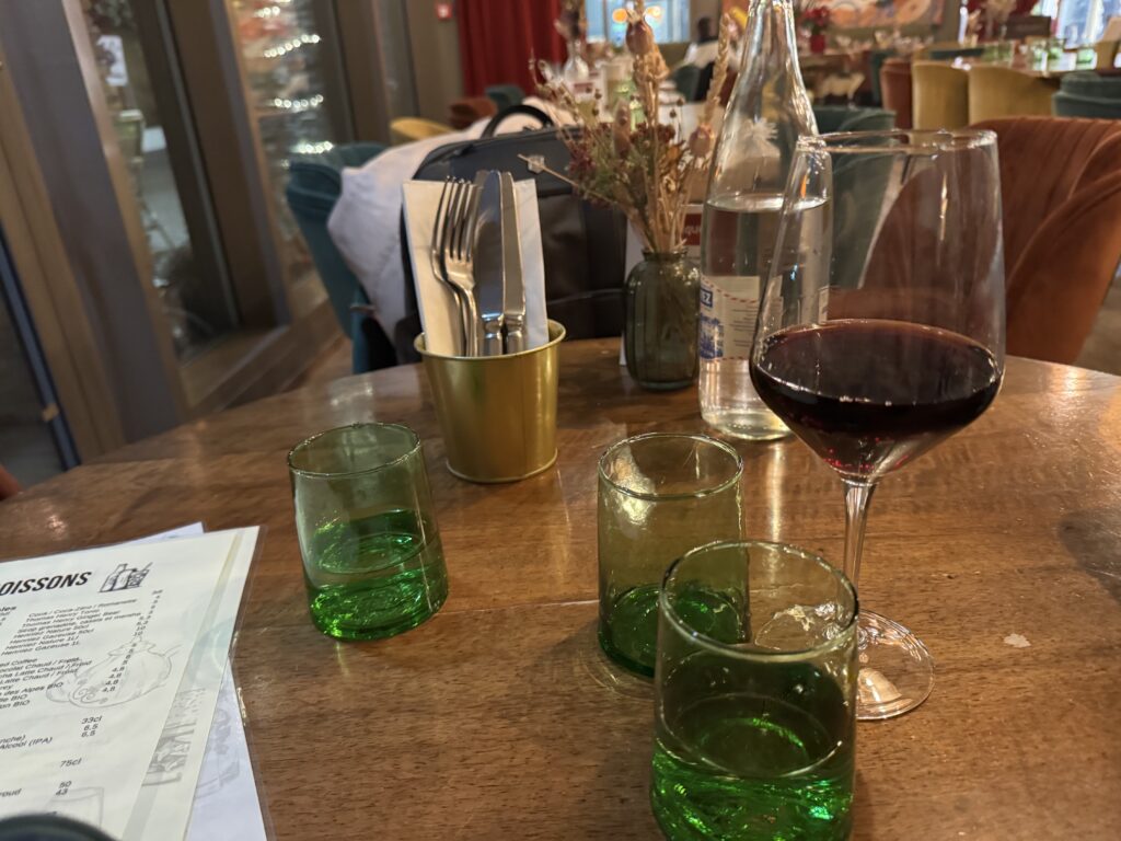 さっそく、オーダーをしてドリンクを飲みながら待ちます。ワインはVin du moment(旬のワイン)のGaranoirにしてみました。