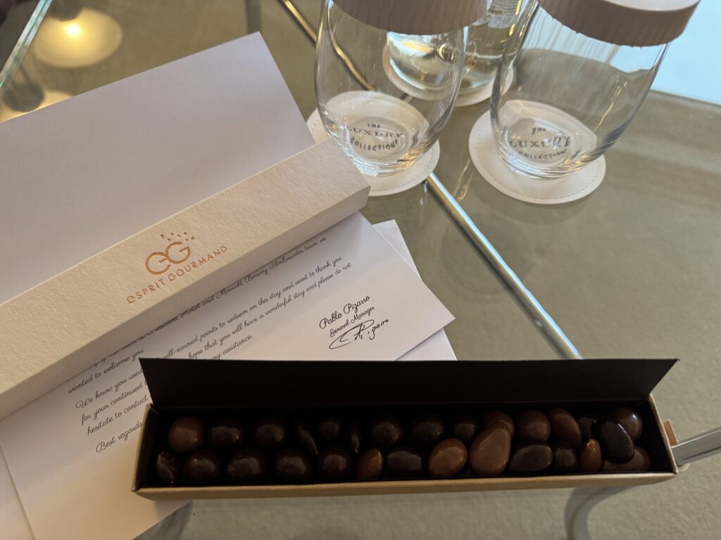 テーブルの上にウェルカムチョコレートが置かれていました。ナッツがたくさん入っていて美味しかったです。