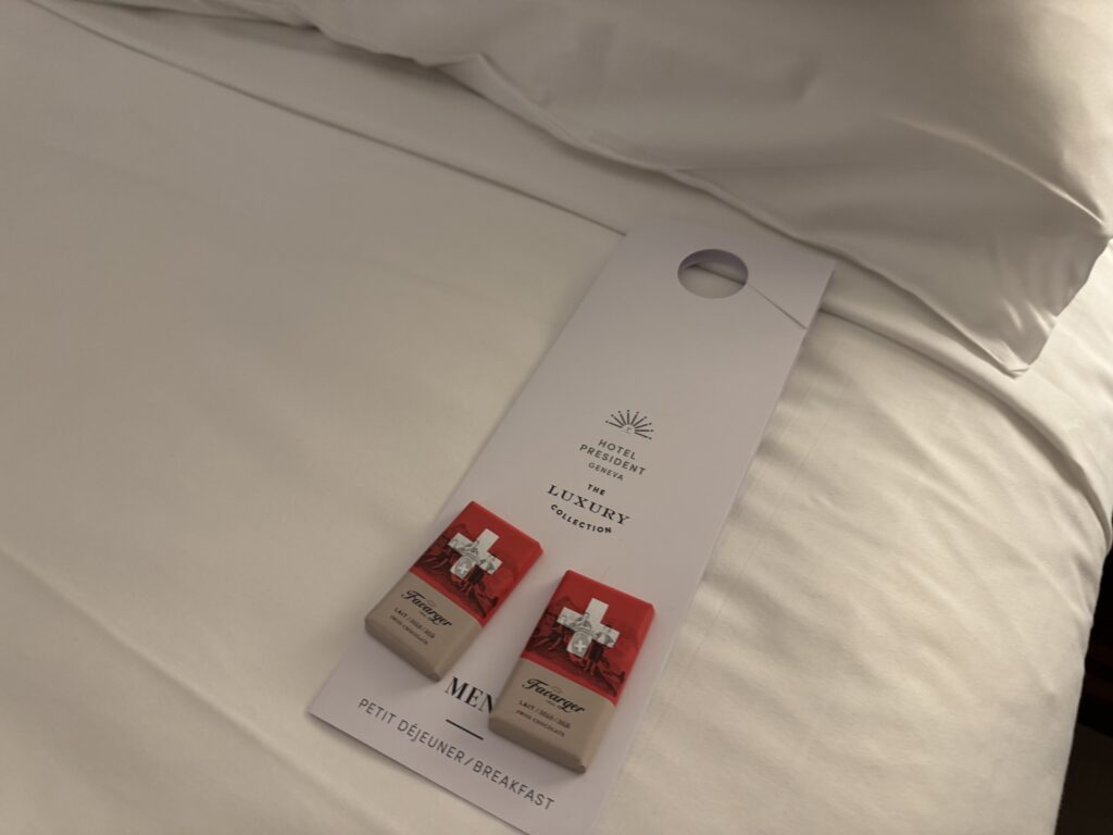 ジュネーブに住んでいるので市内のホテルに泊まるなんて考えたことがなかったのですが、クリスマスだから非日常を体験しよう!と主人が予約してくれました。