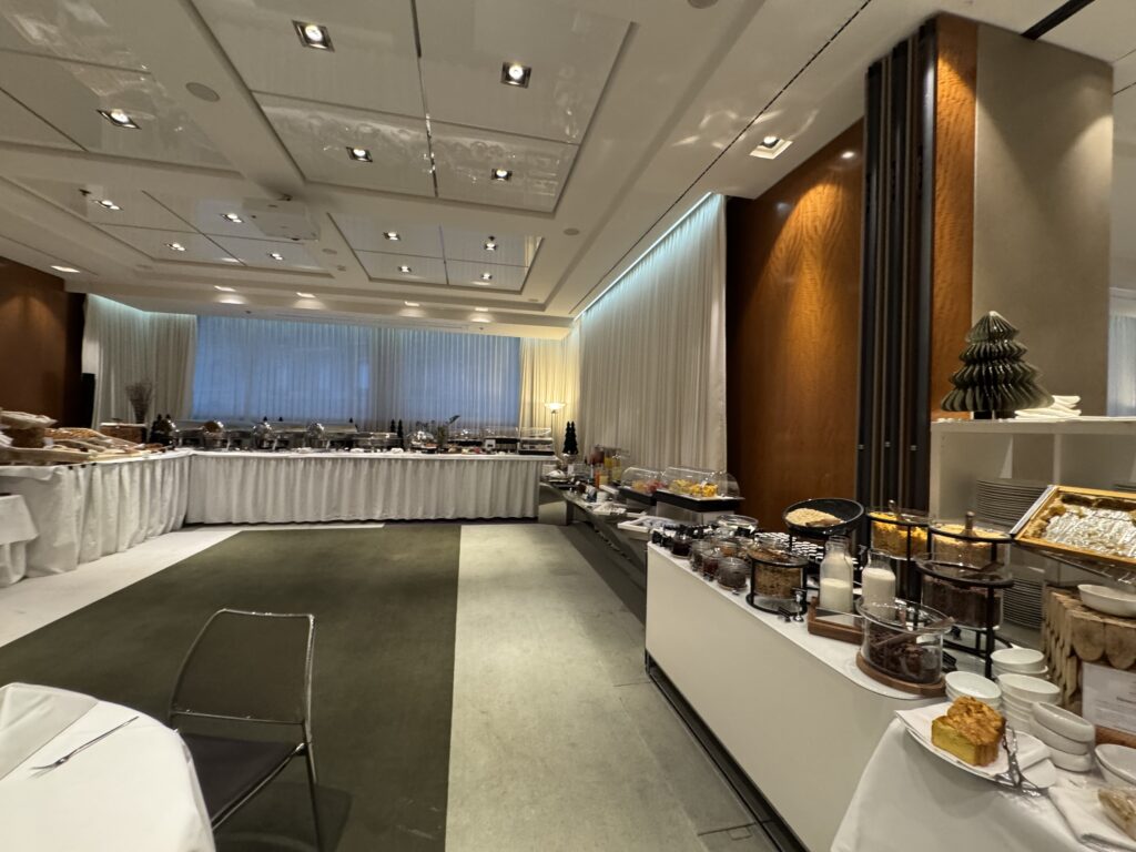 通常の朝食レストランが臨時休業とのことで、会議室のような場所が朝食会場となっていました。