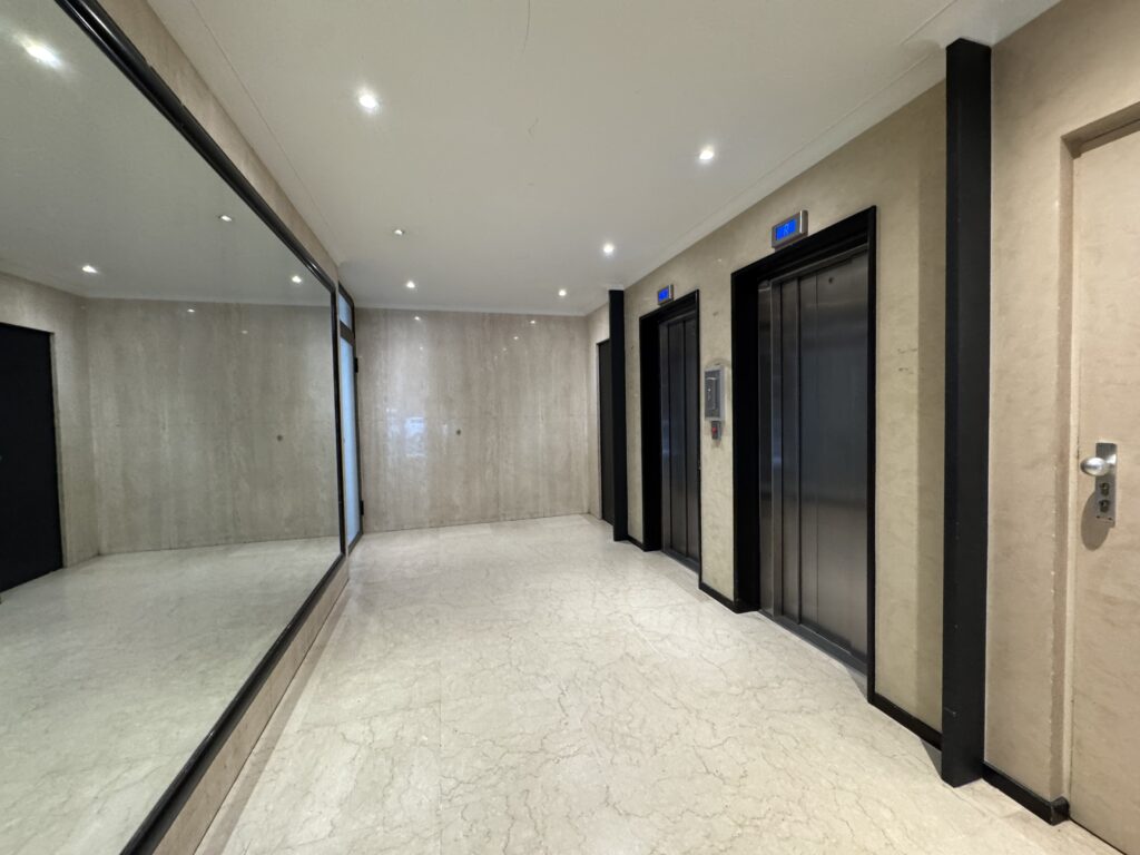 建物の中に入り、普通のエレベーターで1階まで上がります。