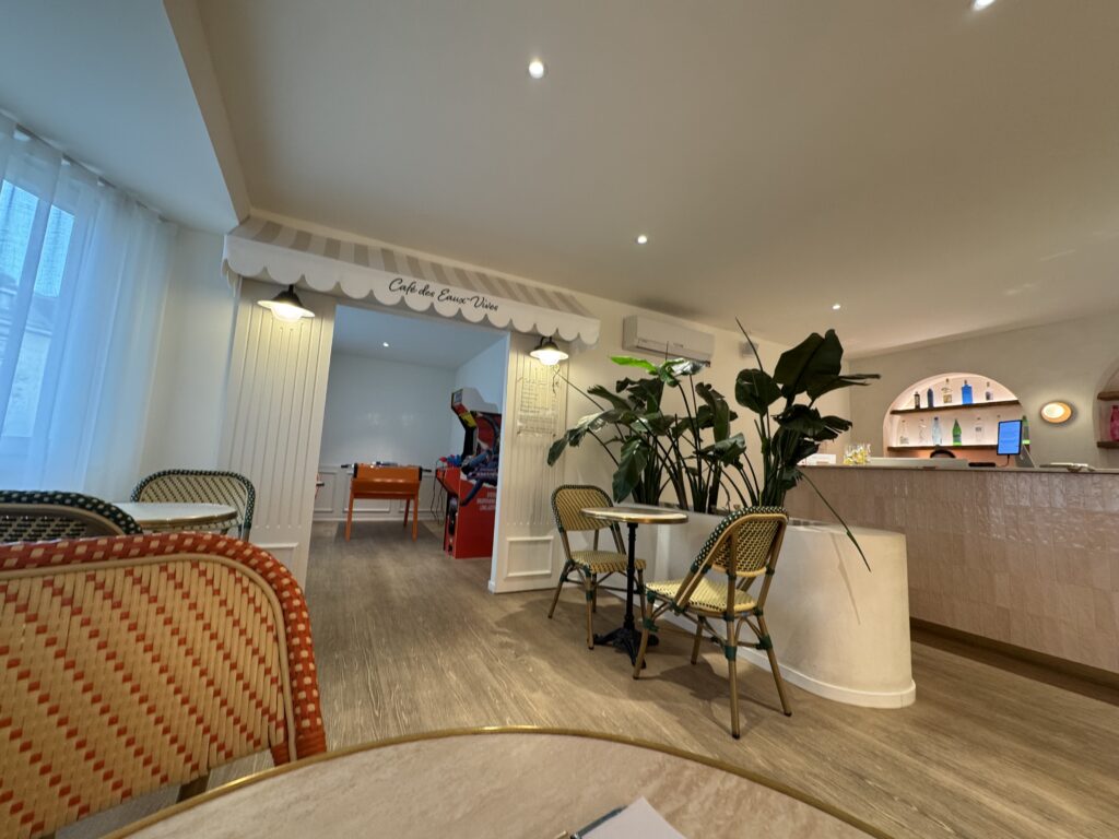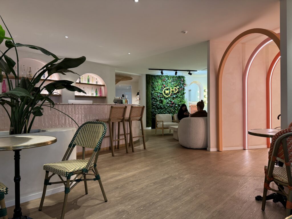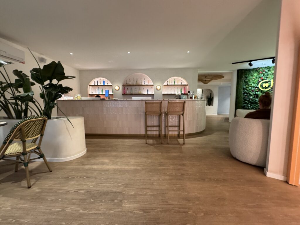 あ、あれ?降りるフロア間違えちゃったかな?カフェの入口みたいなフロアに出てしまいました。いやでも・・・